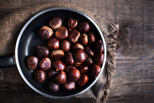 S’il y a un fruit que l’on assimile aux fêtes de fin d’année, qui évoque la chaleur d’un feu de cheminée et la tablée festive, c’est bien la châtaigne. Eh bien, c’est pareil pour les grecs ! Marrons grillés ou cuits à l’eau, volailles farcies à la châtaigne, marrons glacés ou enrobés de chocolat, rôti de porc aux châtaignes et aux pruneaux, bûche aux marrons, ne manquent jamais à la table de Noël ! En Grèce on fait honneur à ce fruit saisonnier et délicieux. Parler de la châtaigne, c’est bien, mais en manger, c’est encore mieux… Alors on vous donne même une recette de Noël avec des châtaignes !