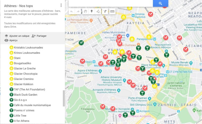 La carte des meilleures adresses d’Athènes sur GoogleMaps